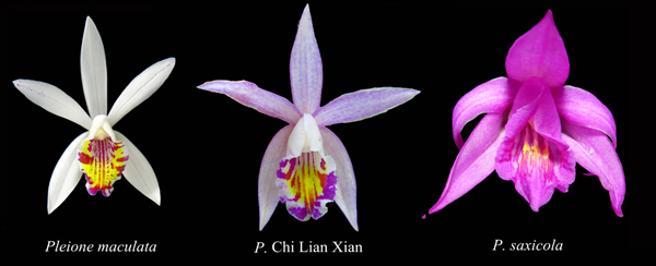 独蒜兰新品种‘赤练仙’(Pleione Chi Lian Xian)由秋花独蒜兰(P. maculata)和岩生独蒜兰(P. saxicola)杂交获得