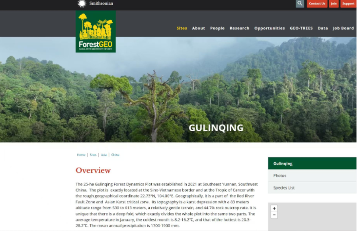 图3 古林箐大样地加入ForestGeo(https://forestgeo.si.edu/sites/china/gulinqing) |